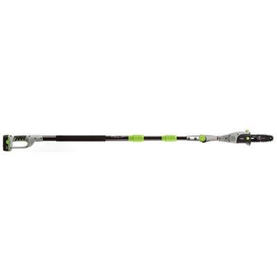 Earthwise 8-Inch Cordless Electric Pole Saw. Pole saw has adjustable length, telescoping shaft with a 9-Feet fully-extended length; cutting angles, 3-position head: straight, 15, and 30 degrees and a powerful 18 volt 17 AH NiCad battery. Sharp, reliable 8-Inch Oregon chain and bar. Lightweight fiberglass pole with auxiliary handle for 360 degree rotation; Automatic bar and chain tension adjustments.