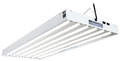 This commercial T5 system delivers performance, flexibility and high lumen output in any growing environment. This daisy chainable system allows to choose multiple hanging configurations to meet the garden design. They combine German specular aluminum with energy efficient and high output T5 bulbs and put out double the light energy of normal fluorescent systems. Consists powder coated, textured steel housing. Dual On/Off switches allow you to control the amount of lumens as needed. It comes with 5 year warranty on ballast, 1-year warranty on craftsmanship and has 10-feet grounded power cord. Hangs 3 ways overhead, vertical or horizontal. Includes fluorescent 6400K tubes. 120-Volt, 60-hertz, hangs in overhead, vertical and horizontal way. Maximum wattage is 324. Initial Lumens are 30,000. Maximum amperage is 2.85. This product weighs 26.3-pound. Measures 49-1/2-inch length by 27-1/2-inch width by 6-1/2-inch height.