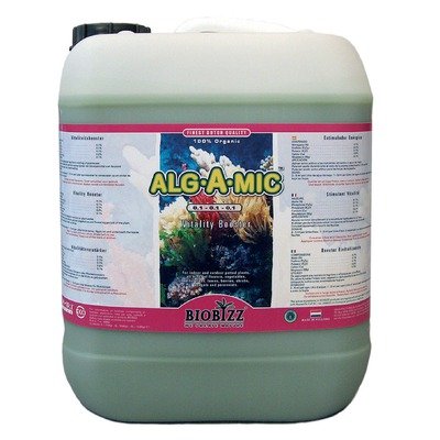 This alg a mic vitality booster utilizes cold-pressed seaweed concentrate to provide an assortment of micronutrients, vitamins, amino acids, and hormones of vegetable origin. Used as a soil drench or foliar spray, Alg-A-Mic increases plant health and disease resistance, while giving leaves a vibrant green color. Alg-A-Mic is used as an additive to the regular nutrient or plant water. Alg-A-Mic can be used during the whole period (vegetative and flowering period) of the plant. Alg-A-Mic can also be used as a leaf additive. Apply 1 tablespoon per gallon of water for soil drench and 1/2-tablespoon per gallon of water for foliar spray. Apply on and underneath the leaves.