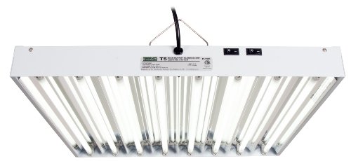This commercial T5 system delivers performance, flexibility and high lumen output in any growing environment. This daisy chainable system allows to choose multiple hanging configurations to meet the garden design. They combine German specular aluminum with energy efficient and high output T5 bulbs and put out double the light energy of normal fluorescent systems. Consists powder coated, textured steel housing. It comes with 5 year warranty and 10-feet grounded power cord. Includes 8 fluorescent 6400K, T5 tubes. 120-Volt, 60-hertz, hangs in overhead, vertical and horizontal way. Maximum wattage 192. Initial Lumens are 16,000. Maximum amperage is 1.6. This product weighs 16.5-pound. Measures 30-inch length by 25-inch width by 5-inch height.