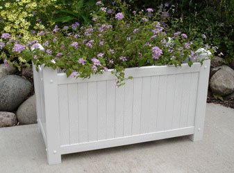 Made in USA. This rectangular planter box comes fully assembled and ready to plant, just add dirt and plant. The Large Slat Planter measures 28-Inch long, 14.5-Inch wide and 17-Inch high with planting dimensions of 24-Inch long, 10.5-Inch wide and 12-Inch high. Made with the highest quality PVC vinyl, this planter is completely maintenance free. The high quality PVC vinyl contains the highest concentration of titanium dioxide for the strongest UV sunlight protection. Buy with confidence, all Dura-Trel products are backed with a 20 year warranty guaranteeing your trellis will never delaminate, crack, peel, fade or discolor in any way. Once assembled and installed in your yard, the only maintenance ever needed is a simple spray with a garden hose and wipe clean.