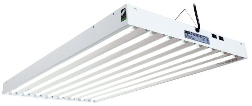 This commercial T5 system delivers performance, flexibility and high lumen output in any growing environment. This daisy chainable system allows to choose multiple hanging configurations to meet the garden design. They combine German specular aluminum with energy efficient and high output T5 bulbs and put out double the light energy of normal fluorescent systems. Consists powder coated, textured steel housing. Dual On/Off switches allow you to control the amount of lumens as needed. It comes with 5 year warranty on ballast, 1-year warranty on craftsmanship and has 10-feet grounded power cord. Hangs 3 ways overhead, vertical or horizontal. Includes fluorescent 6400K tubes. 120-Volt, 60-hertz, hangs in overhead, vertical and horizontal way. Maximum wattage is 432. Initial Lumens are 40,000. Maximum amperage is 3.78. This product weighs 31.4-pound. Measures 49-1/2-inch length by 34-inch width by 6-1/2-inch height.