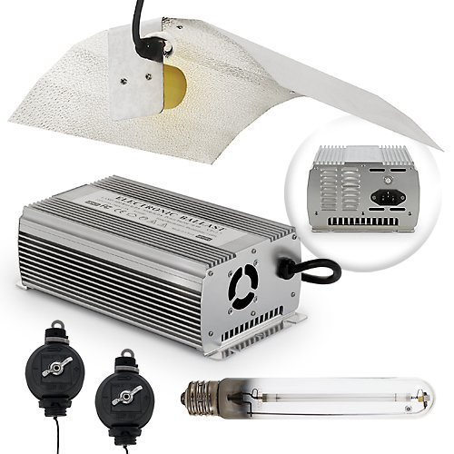 The HPS-600-PRO complete grow light kit from Xen-Lux includes a reflector, ballast, lamp, and suspension system: Reflector: The lightweight, high-performance reflector is constructed from high-purity aluminum from Almeco-specialists in light reflection materials and design. It features computer designed reflection angles, and a hammer (dimpled) specular finish for even light distribution. The super-duty (2,000 watt, 600 volt rated), UL-approved ceramic socket is pre-wired with 14.5-inch cord. Measures 18.5 inches long, 15 inches wide, 4.5 inches tall. Ballast: The ultra-high efficiency (99.9% power factor), 600 watt digital ballast runs High Pressure Sodium (HPS), Metal Halide (MH), and Dual Arc bulbs. This dual voltage unit operates on 120 or 240 volts; automatically detects and switches to correct setting. Heavy-duty, 8-foot grounded power cord (3-prong, 110 volt plug). UL-approved, CE Certified and circuit breaker protected. Lamp: Includes a top-grade, HO (High Output) 600 watt, High Pressure Sodium (HPS) lamp that produces an extremely high-intensity light (90,000 true rated lumens), concentrated in the red-orange area of the visible spectrum. Expected life span: 24,000 hours. Color temperature: 2,100 degrees Kelvin. Model: LU600W/T15/HO (T15 designates bulb shape; HO indicates High Output bulb.) Suspension: The Easy Roller retractable suspension system makes it easy to raise or lower the reflector as needed. Max capacity per pair is 22 pounds. Includes screw hooks for hanging the kit reflector, and an eye-hook for use with round reflectors. Includes complete HPS-600-PRO Light System: premium aluminum reflector; pre-installed socket and quick detach cord; ultra-high efficiency digital ballast (600-watt); USA standard 3-prong power-cord (120 volts); high output HPS bulb (600-watt); pair of easy rollers; and mounting hardware.