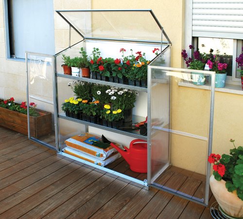The Grow Station 45 1/2 " wide and 22" deep and is a unique combination of a cold frame, a workbench and a storage unit. Put plants at a comfortable working height for potting, and use as a cold frame for starting and protecting precious seedlings. Perfect for storing all of your tools and accesories to keep your patio garden tidy. The sturdy galvanized steel shelves are adjustable for ergonomic placement, and both the lid and doors hinge open for accessibility. Crystal clear SnapGlas™ panels on the lid and doors allow 90% light transmission.